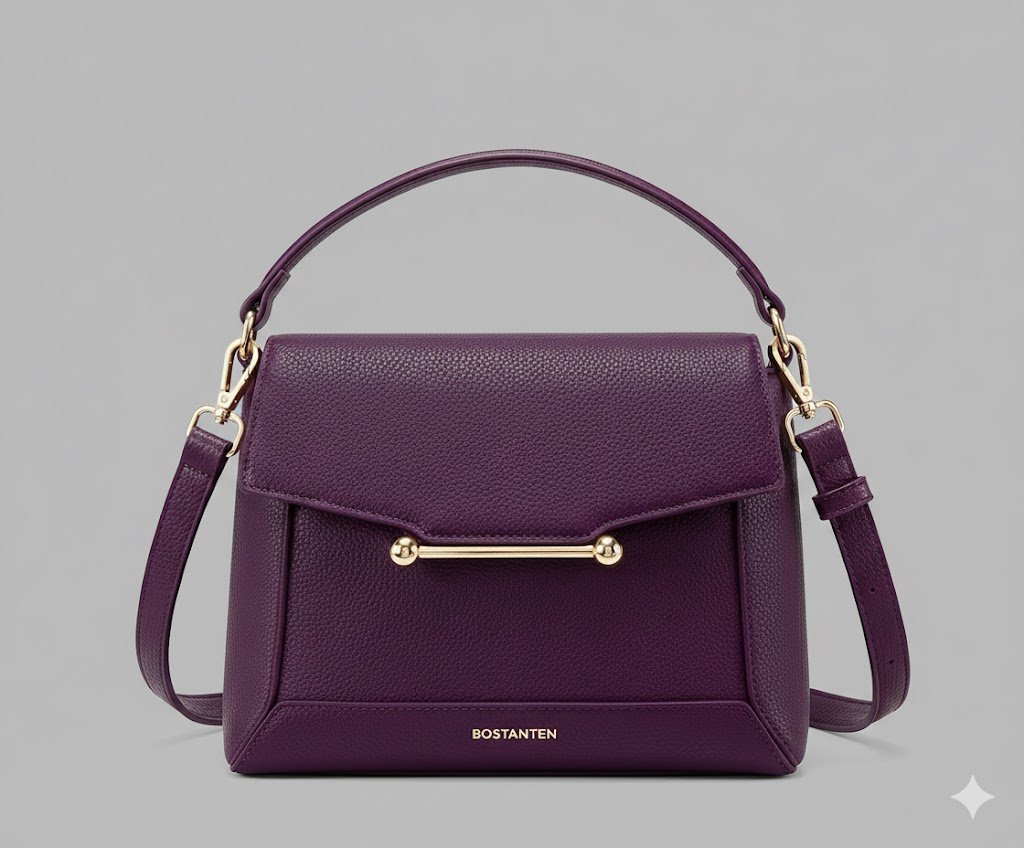Experience the perfect intersection of vintage charm and modern sophistication with this BOSTANTEN Purple Vegan Leather Crossbody. Designed for the woman who appreciates structured elegance, this bag features a unique gold-tone bar accent and a rich pebbled texture that elevates any outfit from casual to couture.