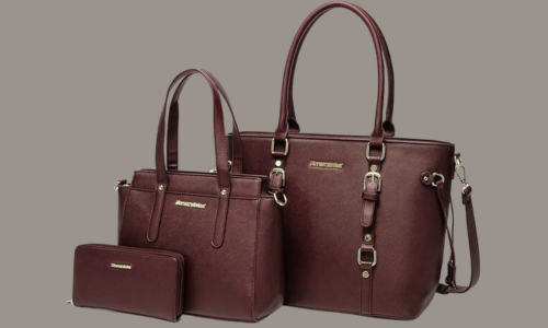 Large Shopper Tote: A spacious primary bag featuring elegant gold-tone hardware, a secure top zipper, and decorative buckle accents on the front. Perfect for your laptop, documents, and daily essentials.